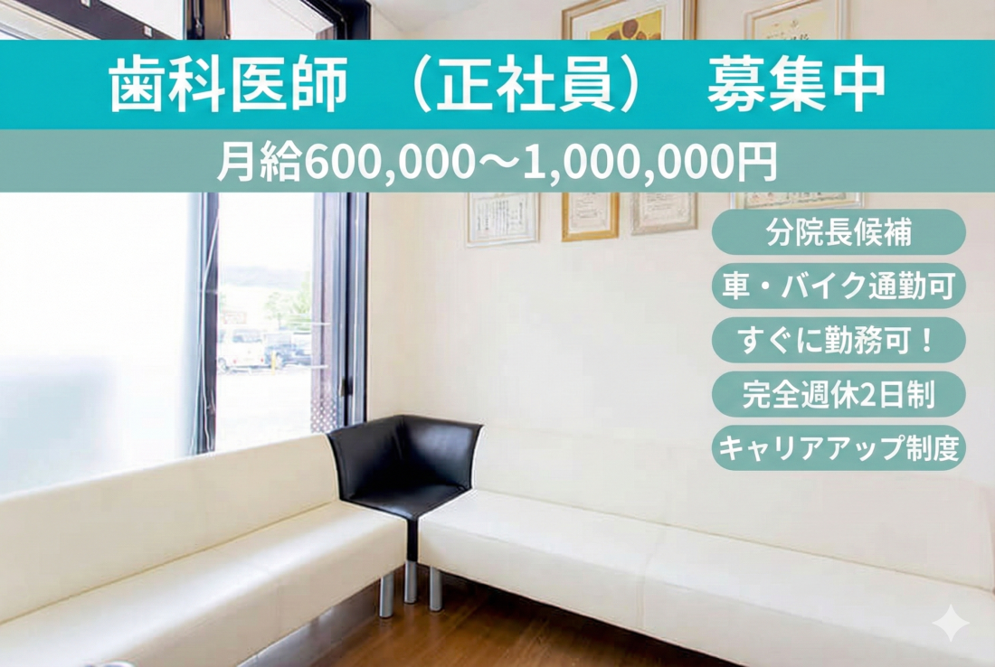 - <募集職種> 歯科医師 <雇用形態> 正社員 <診療科目> 歯科 <勤務形態> 日勤のみ